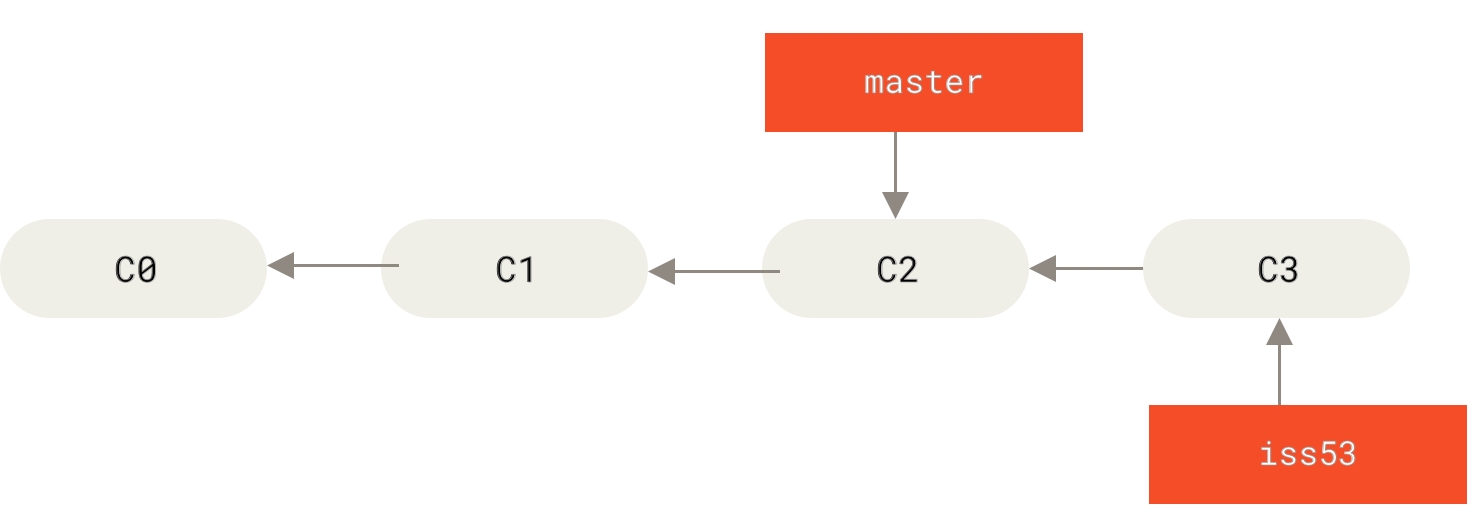 echo "new feature added" >> file1.txtgit commit -a -m 'C3'The iss53 branch has moved forward with your work